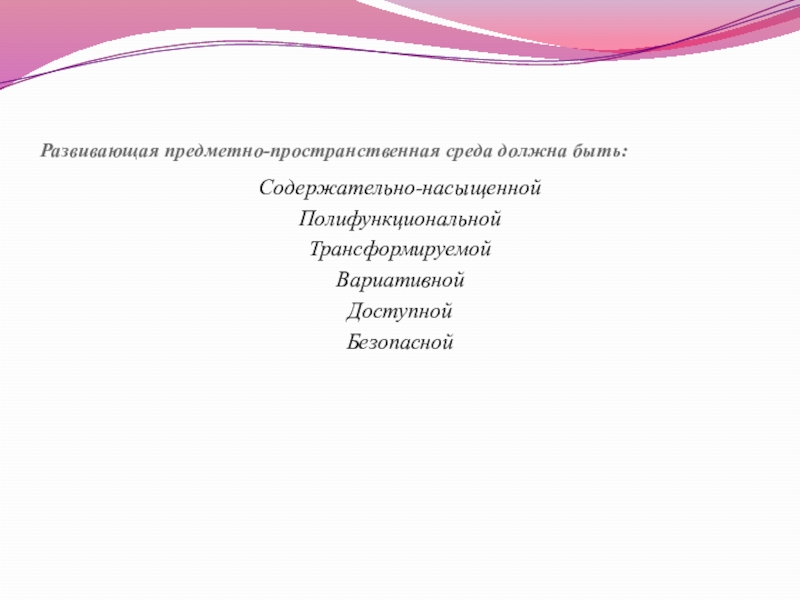 Слайд 7Развивающая предметно-пространственная среда должна быть: