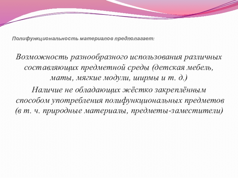 Возможность разнообразного использования различных составляющих предметной среды (детская мебель,
