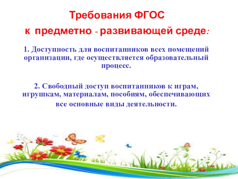 2. Свободный доступ воспитанников к играм, игрушкам, материалам, пособиям, обеспечивающих все основные виды деятельности.