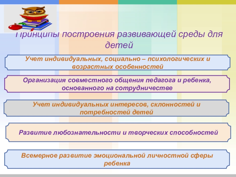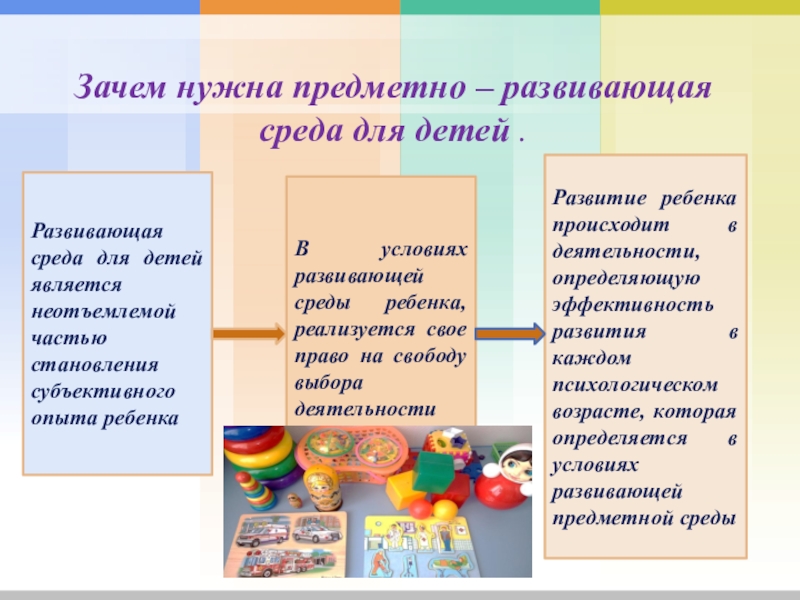 Развитие ребенка происходит в деятельности, определяющую эффективность развития в каждом психологическом возрасте, которая определяется в условиях развивающей предметной среды