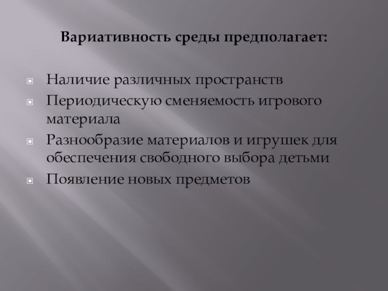 Слайд 12Вариативность среды предполагает: