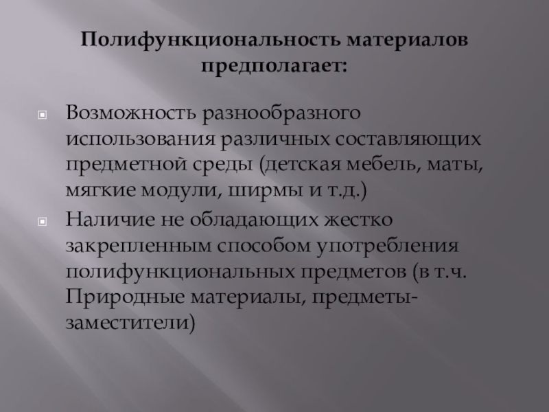 Слайд 10Полифункциональность материалов предполагает: