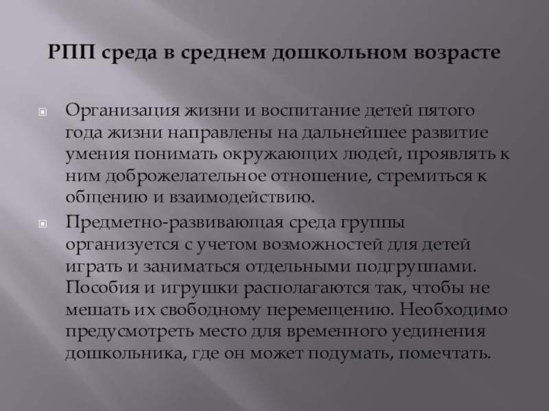 Слайд 6РПП среда в среднем дошкольном возрасте