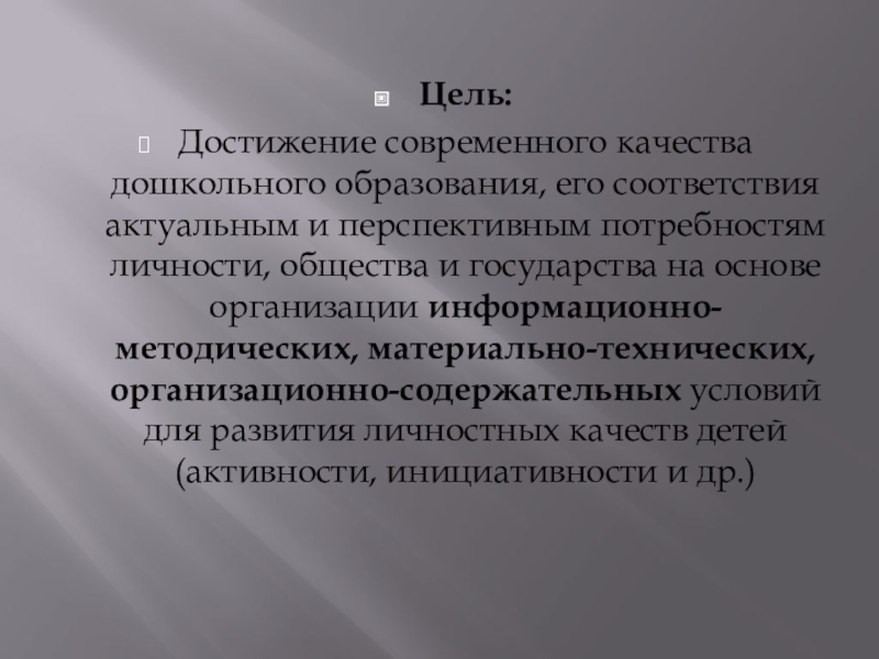 Достижение современного качества дошкольного образования, его соответствия актуальным и перспективным потребностям