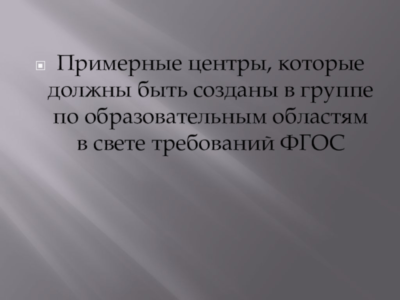 Слайд 15Примерные центры, которые должны быть созданы в группе по образовательным областям