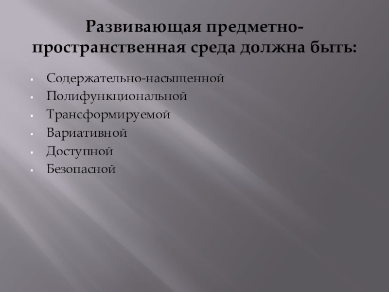 Слайд 8Развивающая предметно-пространственная среда должна быть: