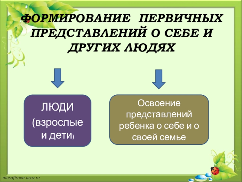 Слайд 8ФОРМИРОВАНИЕ ПЕРВИЧНЫХ ПРЕДСТАВЛЕНИЙ О СЕБЕ И ДРУГИХ ЛЮДЯХ