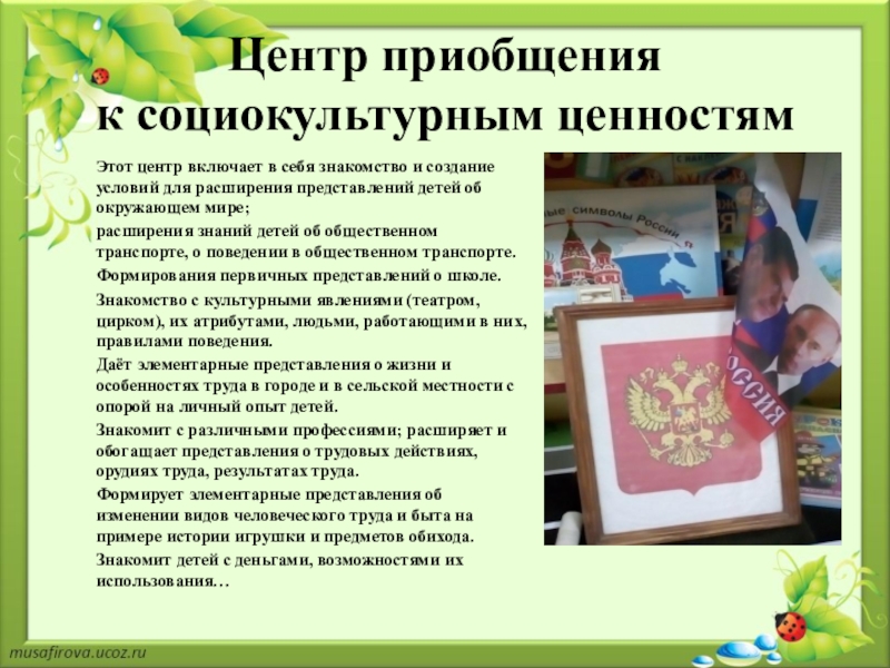 В данном центре располагаются нормативно — знаковый материал: магнитная
