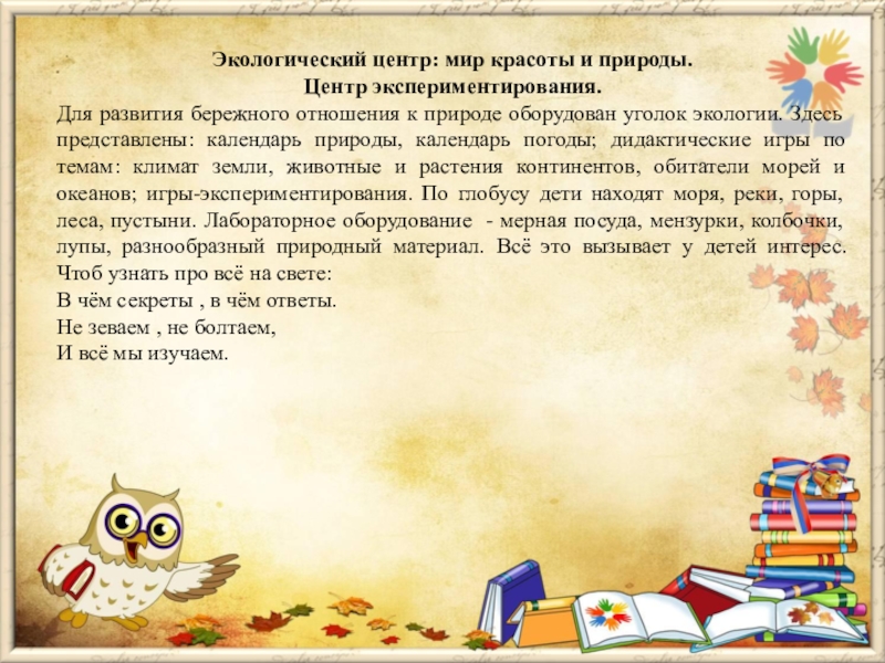 Слайд 10Экологический центр: мир красоты и природы.