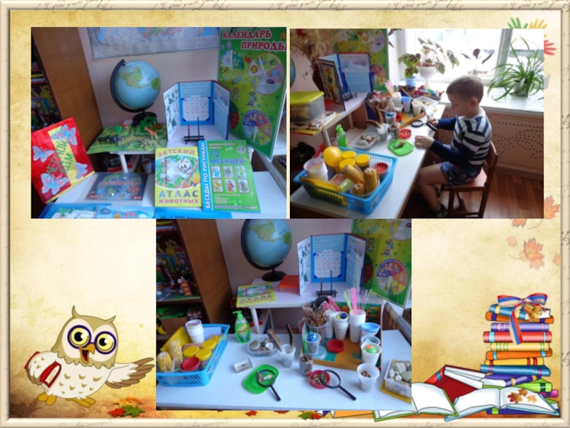 природе оборудован уголок экологии. Здесь представлены: календарь природы, календарь погоды; дидактические игры по темам: климат земли, животные и растения континентов, обитатели морей и океанов; игры-экспериментирования. По глобусу дети находят моря, реки, горы, леса, пустыни. Лабораторное оборудование - мерная посуда, мензурки, колбочки, лупы, разнообразный природный материал. Всё это вызывает у детей интерес. Чтоб узнать про всё на свете: