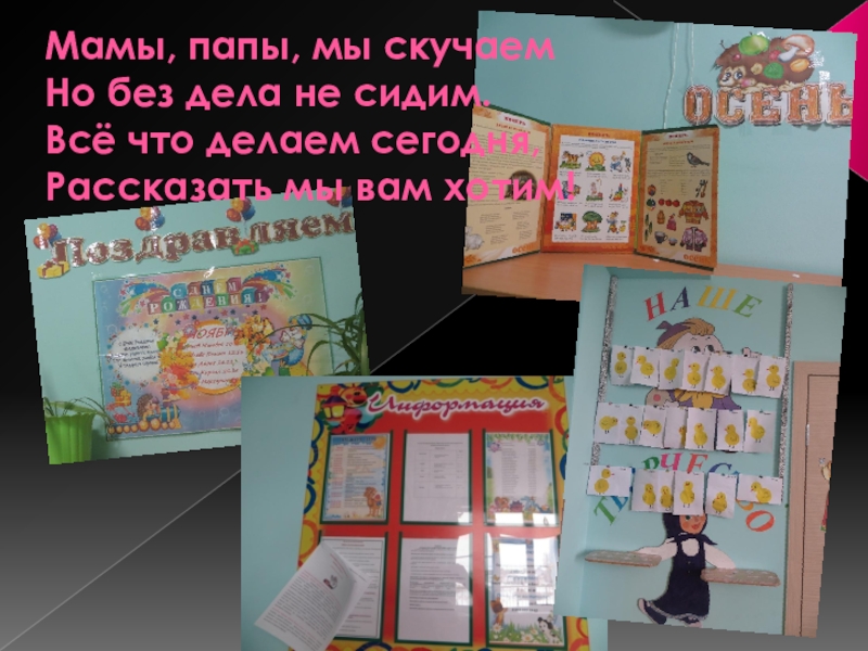 Мамы, папы, мы скучаем Но без дела не сидим. Всё что делаем сегодня, Рассказать мы вам хотим!