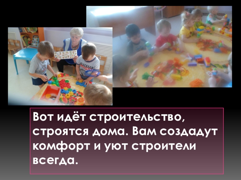 Слайд 20Вот идёт строительство, строятся дома. Вам создадут комфорт и уют строители всегда.