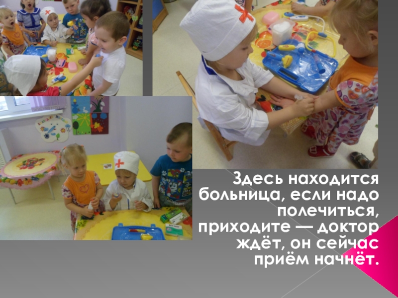 Слайд 12Здесь находится больница, если надо полечиться, приходите — доктор ждёт, он