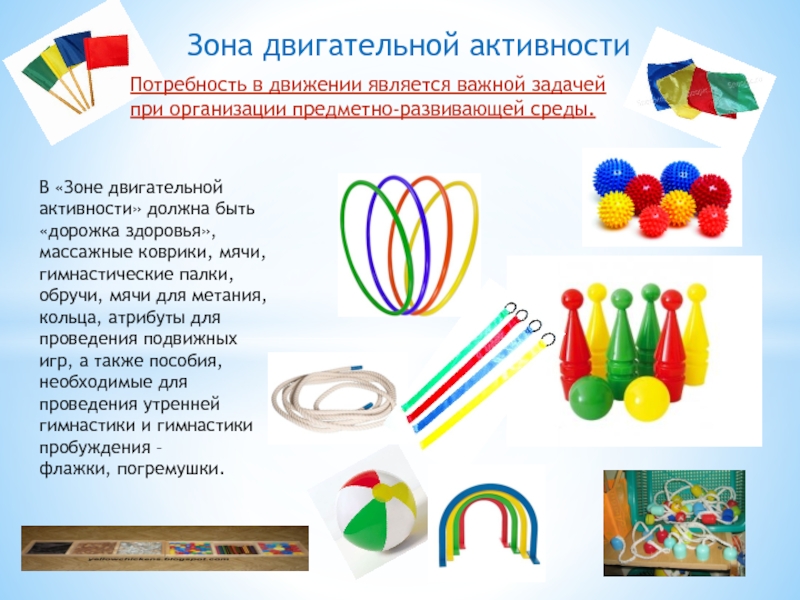 Потребность в движении является важной задачей при организации предметно-развивающей среды.