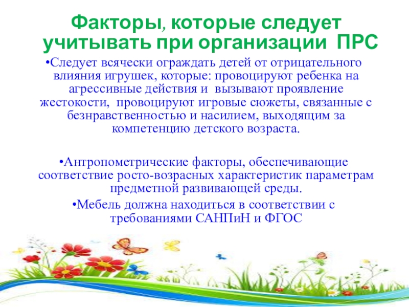 Слайд 6Факторы, которые следует учитывать при организации ПРС
