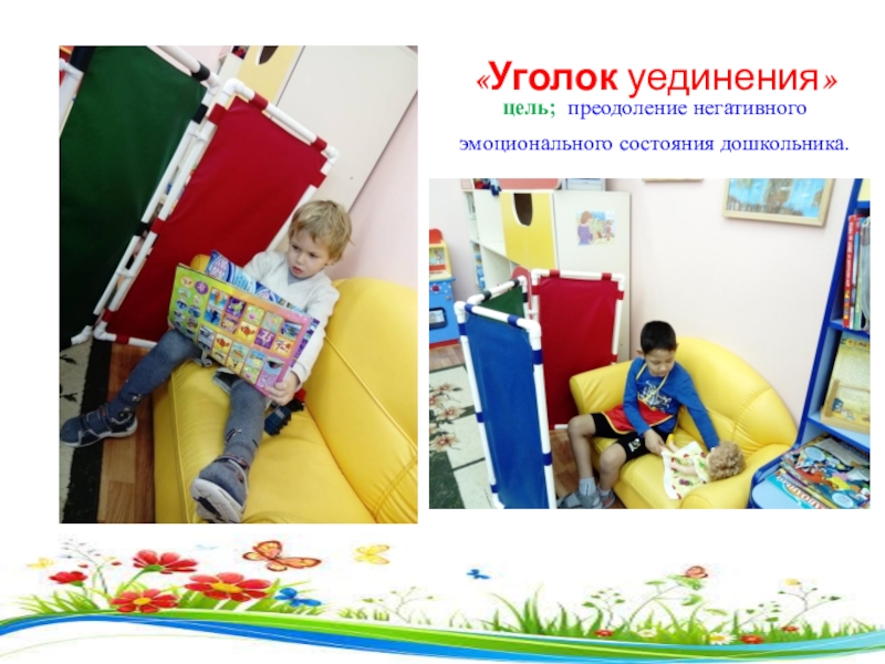 Слайд 25«Уголок уединения» цель; преодоление негативного эмоционального состояния