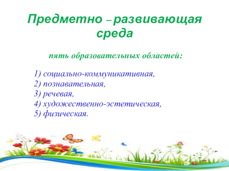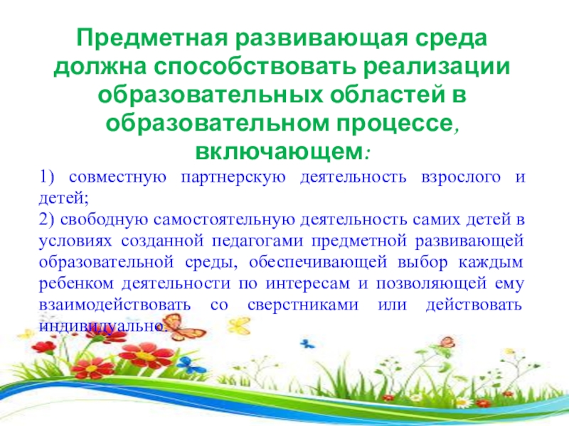 Слайд 7Предметная развивающая среда должна способствовать реализации образовательных областей в образовательном процессе,