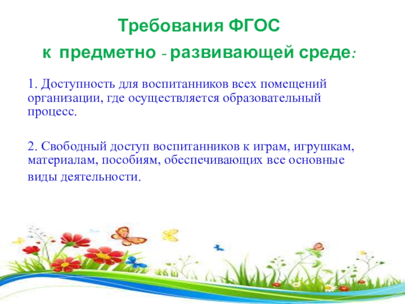 2. Свободный доступ воспитанников к играм, игрушкам, материалам, пособиям, обеспечивающих все основные виды деятельности.