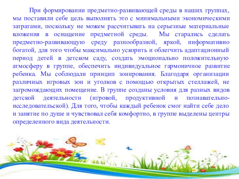 Слайд 10 При формировании предметно-развивающей среды в наших группах,