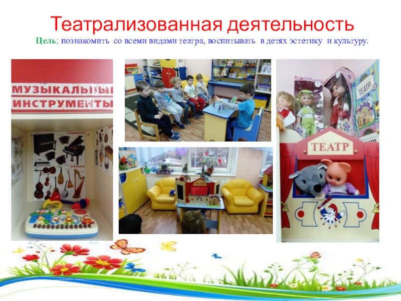 Цель; познакомить со всеми видами театра, воспитывать в детях эстетику и культуру.