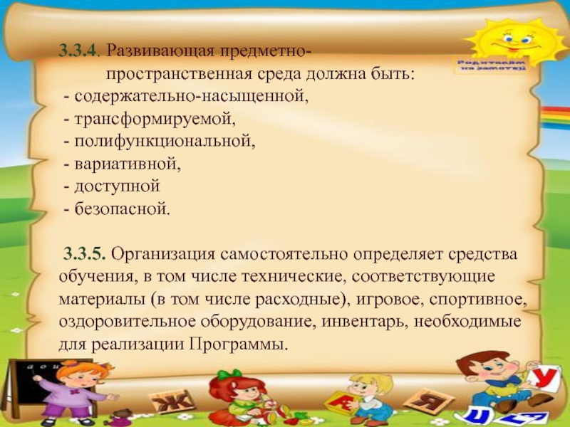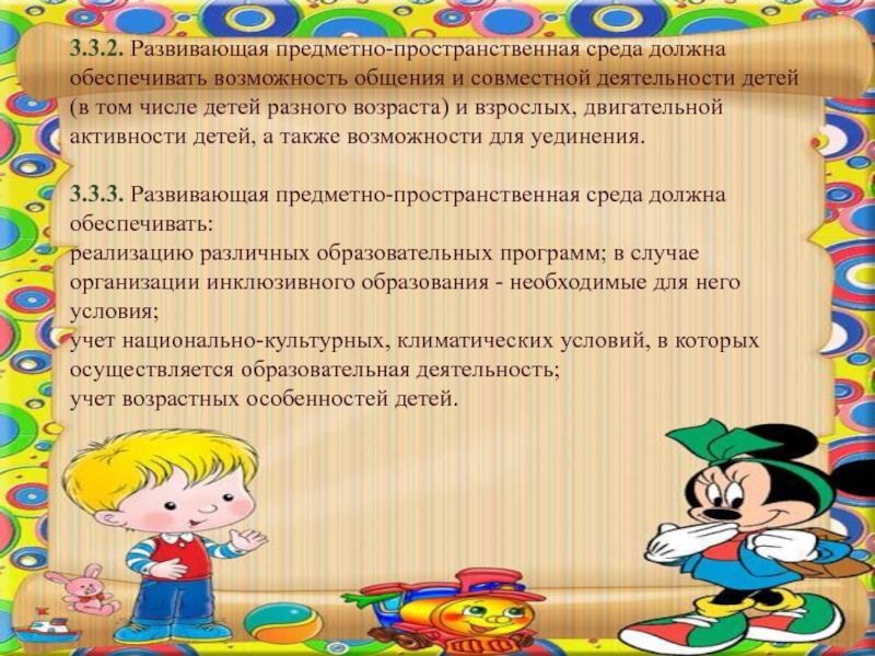 3.3.3. Развивающая предметно-пространственная среда должна обеспечивать: