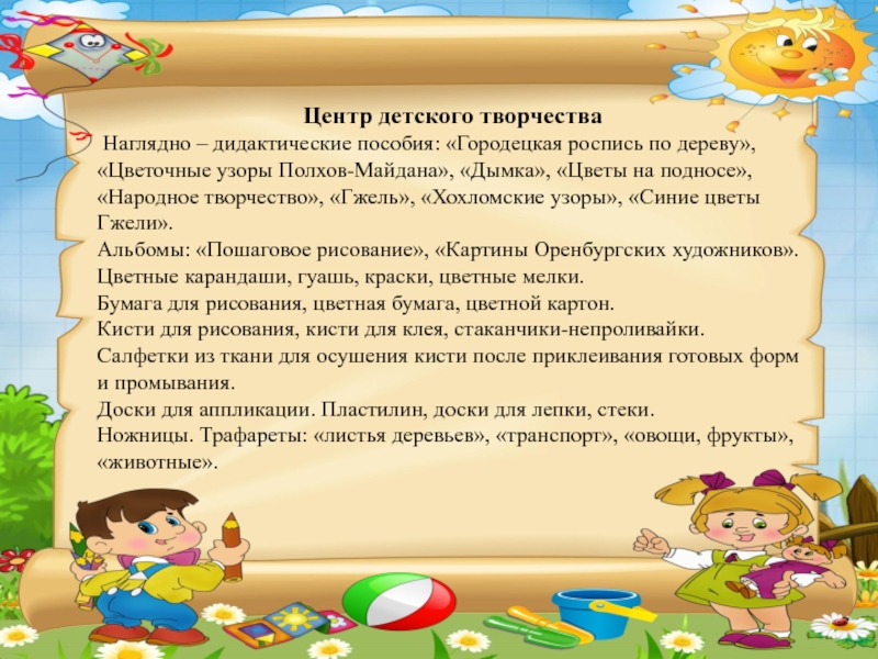 В такой среде возможно одновременное включение в активную познавательно-творческую деятельность всех детей группы.