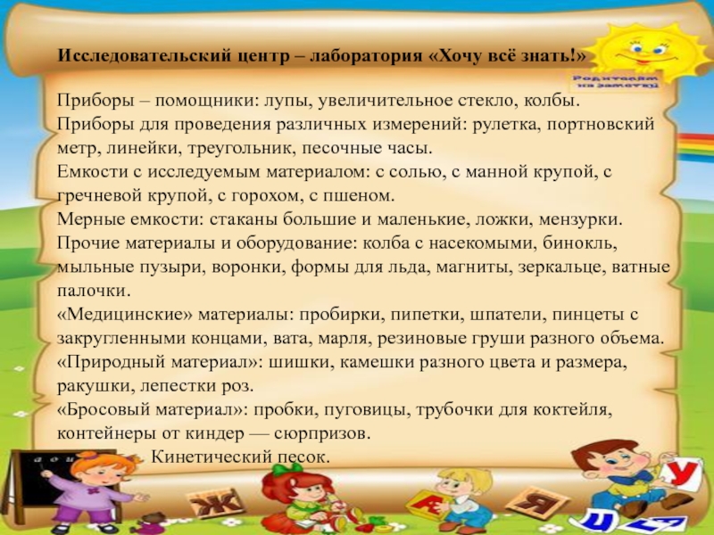 Слайд 26Исследовательский центр – лаборатория «Хочу всё знать!»