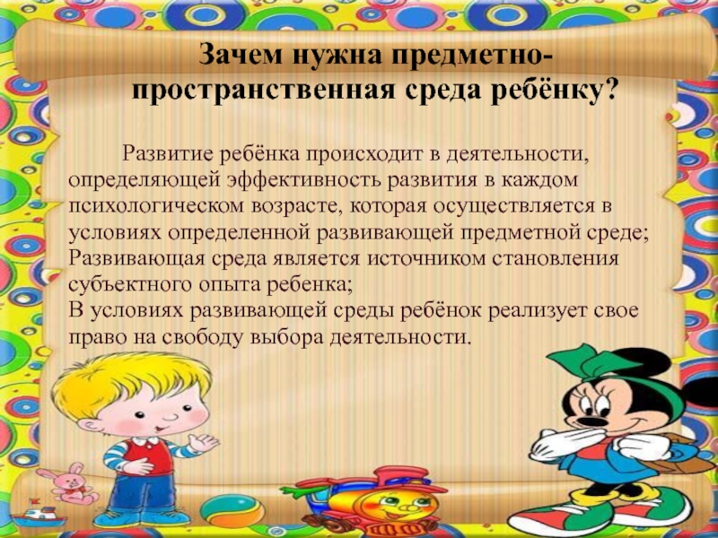 Слайд 45Зачем нужна предметно-пространственная среда ребёнку?