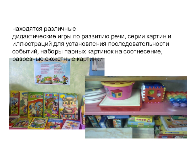 Он оснащѐн необходимыми атрибутами, игрушками, дидактическими играми. дополнительным набором