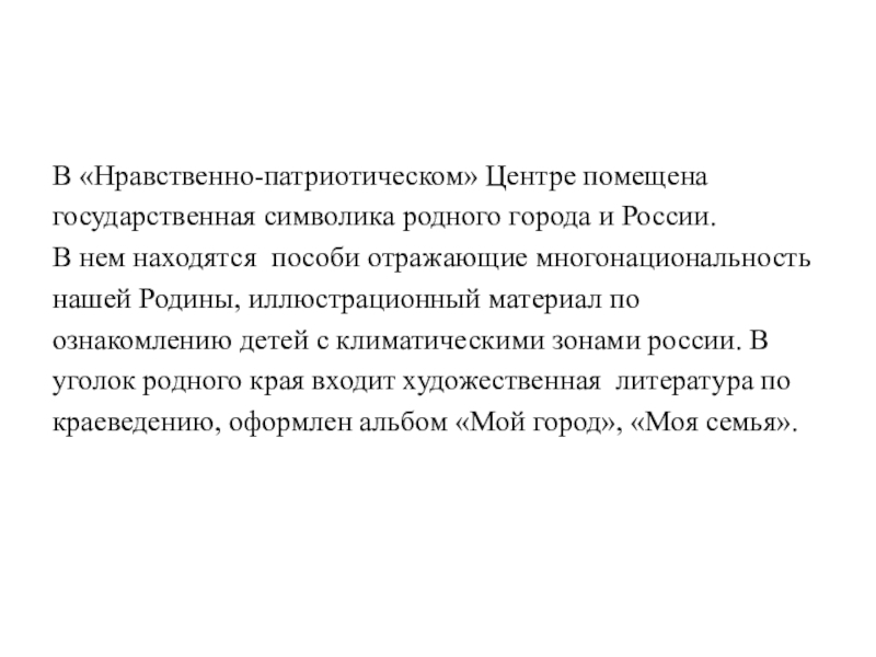 Слайд 13В «Нравственно-патриотическом» Центре помещена
