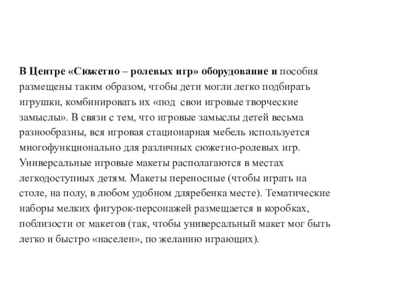 Слайд 20В Центре «Сюжетно – ролевых игр» оборудование и пособия