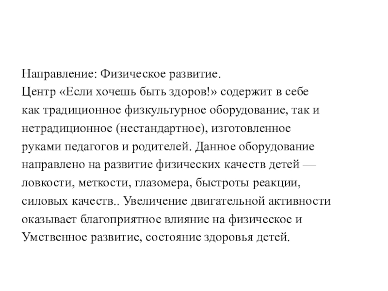 Центры активности организованы на основе интеграции содержания и видов деятельности по следующим направлениям.
