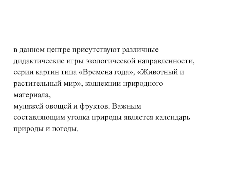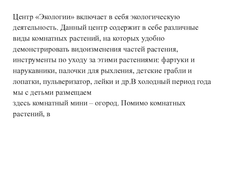 Слайд 8Центр «Экологии» включает в себя экологическую
