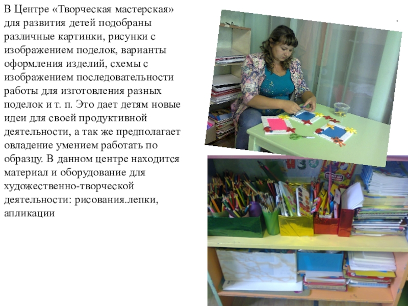 Слайд 3В Центре «Творческая мастерская» для развития детей подобраны различные картинки, рисунки