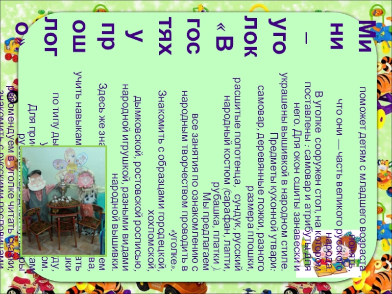 Слайд 18Мини – уголок « В гостях у прошлого».
