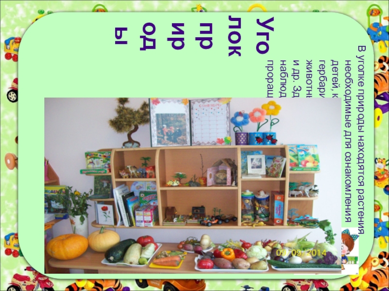 В уголке природы находятся растения, необходимые для ознакомления детей, коллекции