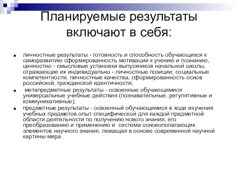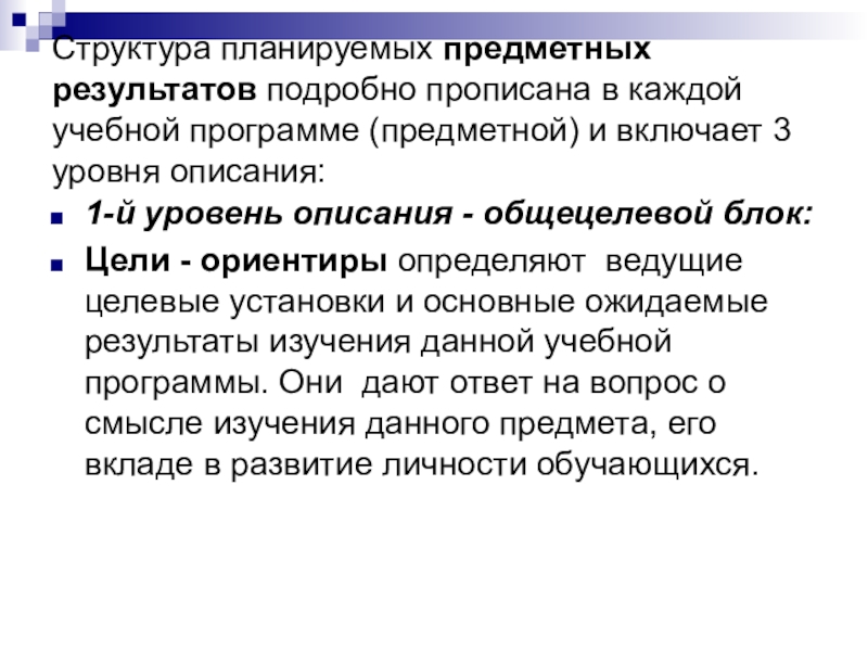 Слайд 3Структура планируемых предметных результатов подробно прописана в каждой учебной программе (предметной)