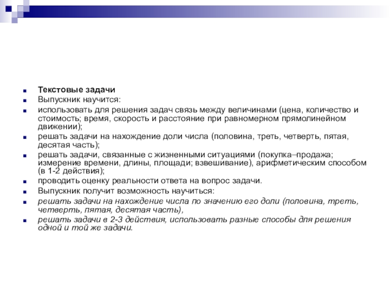 решать задачи на нахождение доли числа (половина, треть, четверть, пятая, десятая часть);