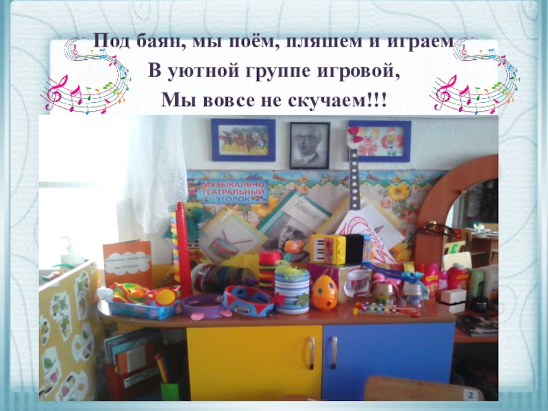 Под баян, мы поём, пляшем и играемВ уютной группе игровой,Мы вовсе не скучаем!!!