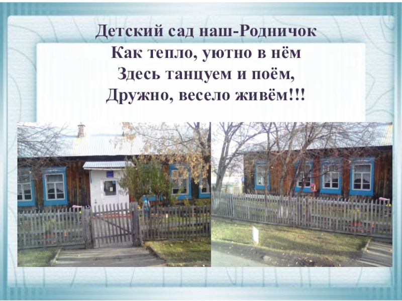 Слайд 2Детский сад наш-Родничок Как тепло, уютно в нём Здесь танцуем и поём, Дружно, весело