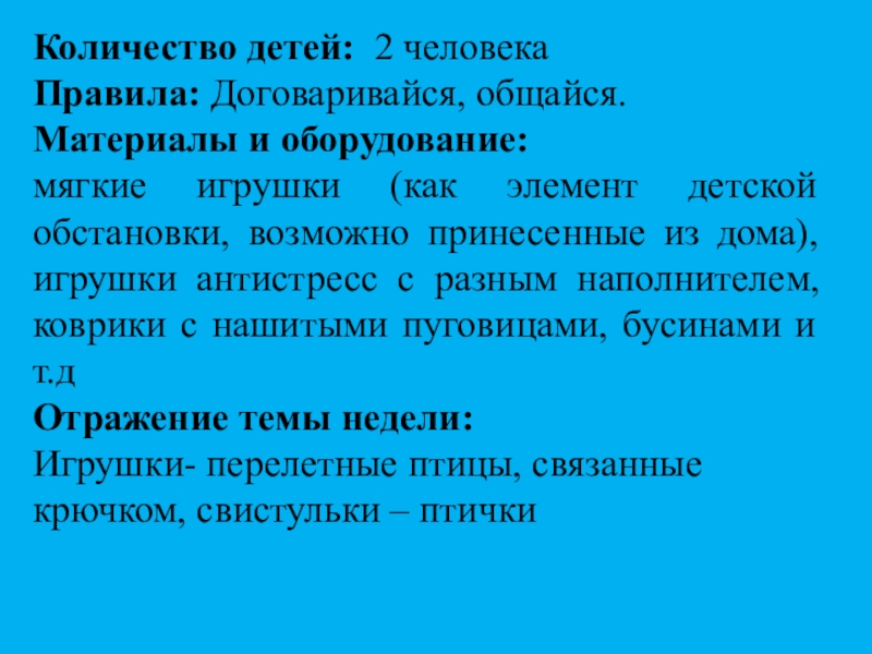 элемент детской обстановки, возможно принесенные из дома), игрушки антистресс с разным наполнителем, коврики с нашитыми пуговицами, бусинами и т.д