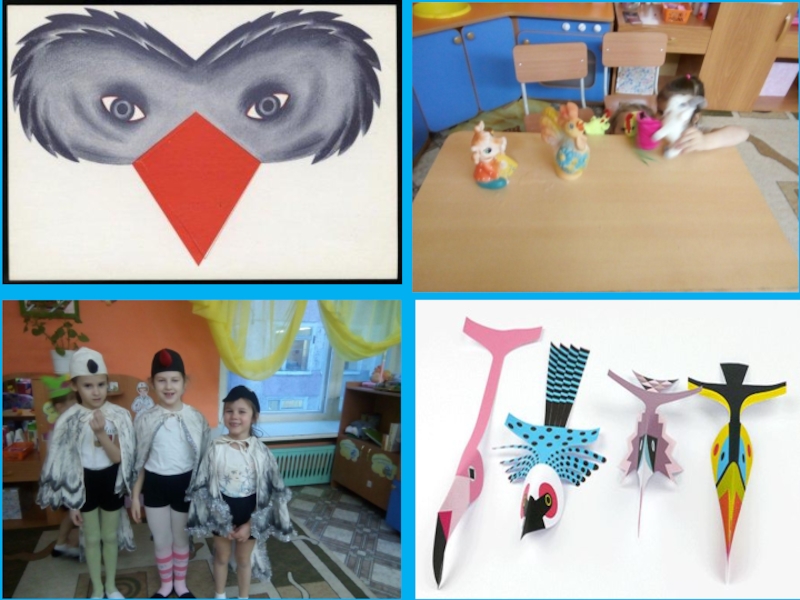 рассматривание картин «Перелет птиц», « Грачи прилетели»; схемы рисования, лепки птиц, маски - образцы из различных материалов, изготовление атрибутов для ролевых игр;