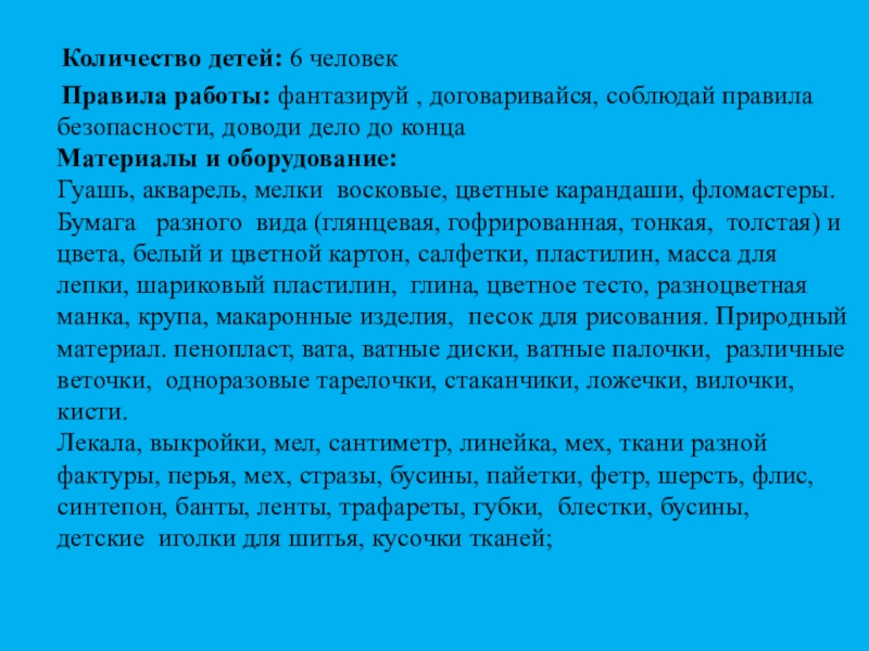 Правила работы: фантазируй , договаривайся, соблюдай правила безопасности, доводи дело до конца