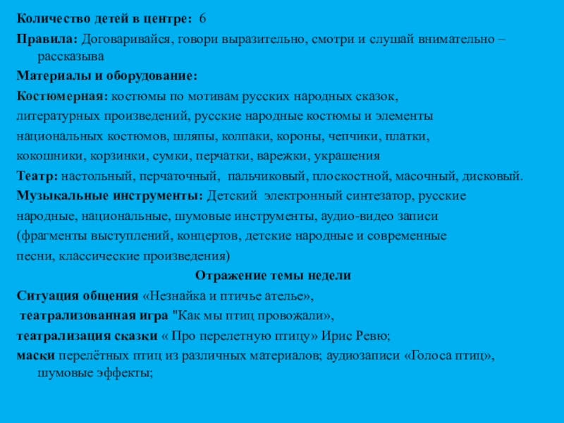 театрализация сказки « Про перелетную птицу» Ирис Ревю;