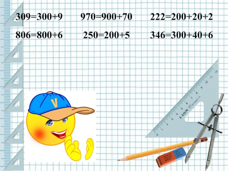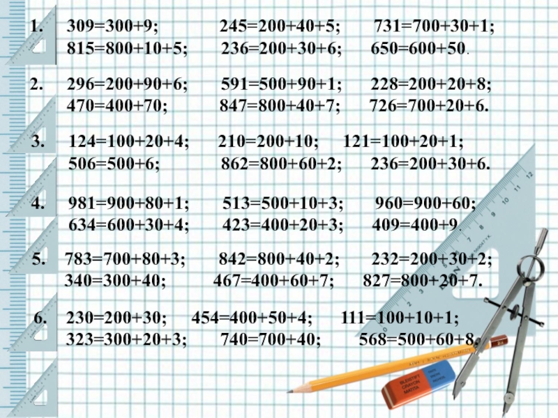 506=500+6; 862=800+60+2; 236=200+30+6.