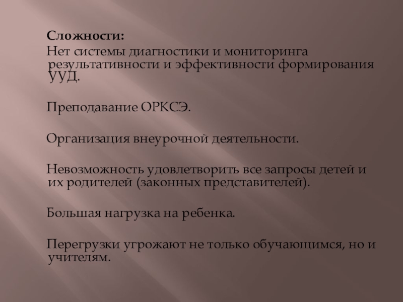 Сложности:   Нет системы диагностики и мониторинга результативности и эффективности формирования УУД.