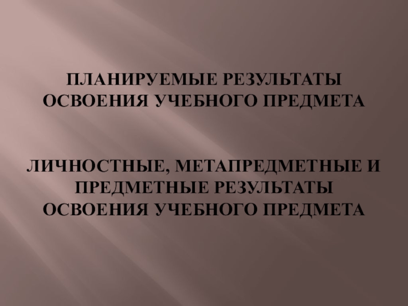 Слайд 7ПЛАНИРУЕМЫЕ РЕЗУЛЬТАТЫ ОСВОЕНИЯ УЧЕБНОГО ПРЕДМЕТА   ЛИЧНОСТНЫЕ, МЕТАПРЕДМЕТНЫЕ И ПРЕДМЕТНЫЕ РЕЗУЛЬТАТЫ ОСВОЕНИЯ УЧЕБНОГО