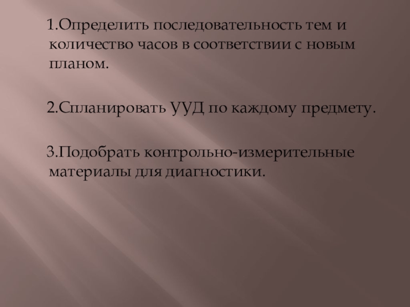 1.Определить последовательность тем и количество часов в соответствии с новым планом.    2.Спланировать