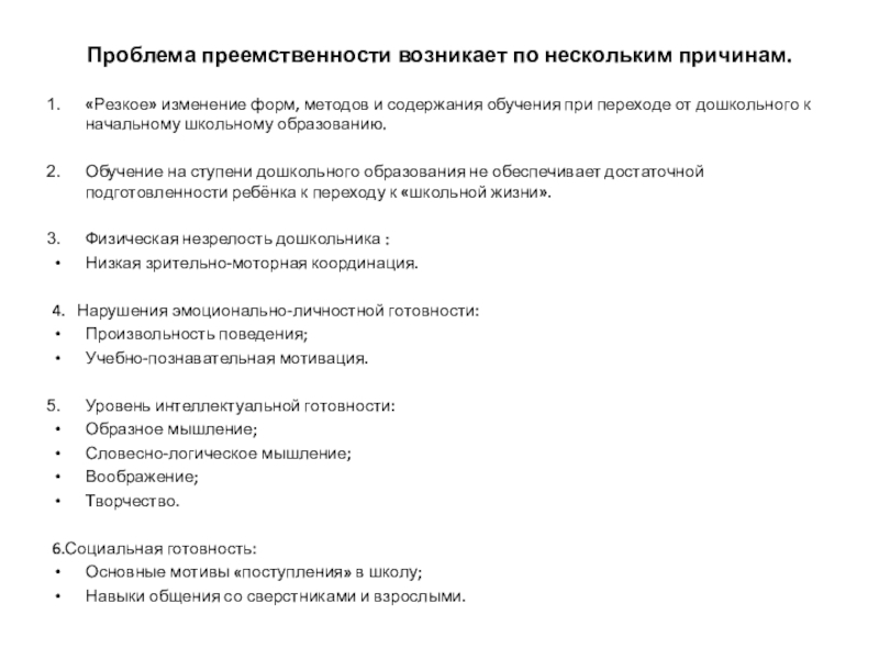 Слайд 6Проблема преемственности возникает по нескольким причинам.