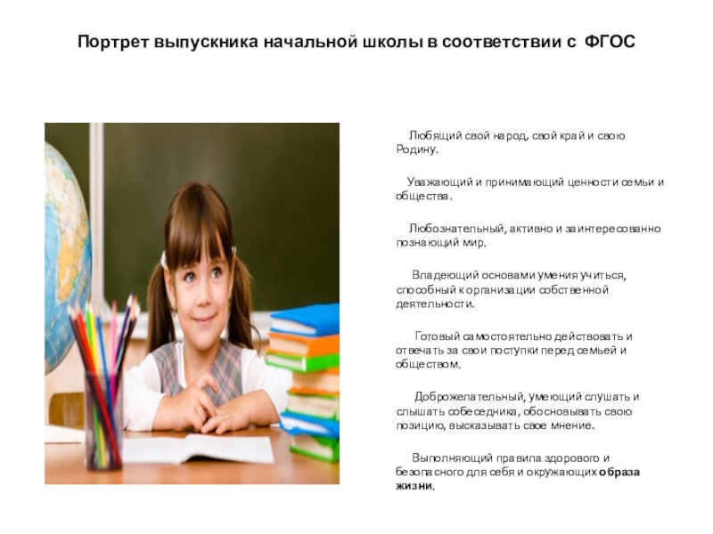 Слайд 20Портрет выпускника начальной школы в соответствии с ФГОС